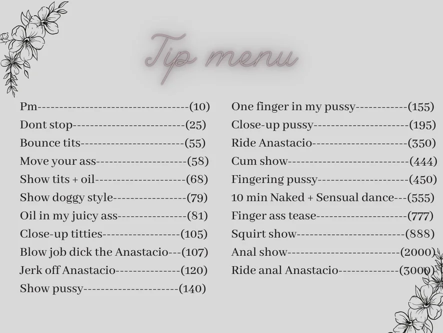 Sex Toys, Spanking, Striptease, Deepthroat, Erotic Dance, Fingering, Dirty Talk, Double Penetration, Facial, Nipple Toys, Anal Toys, Cowgirl, Topless, Handjob, Doggy Style, Dildo or Vibrator, Masturbation, Twerk, Camel Toe, 69 Position, Foot Fetish, Anal, Blowjob, Tittyfuck, Squirt, Oil Show, Hardcore, Orgasm, Ahegao, Shower, Gagging, Humiliation